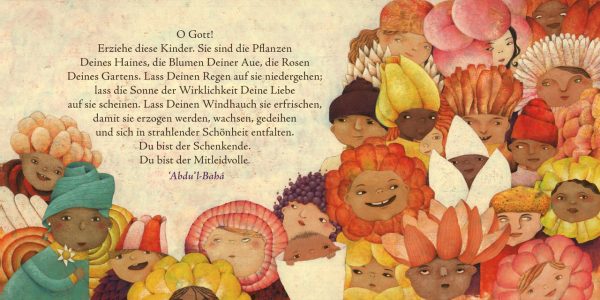 Druck auf Leinwand, illustriertes Gebet „Blumenkinder“ von Constanze von Kitzing, Format: 30x60cm.