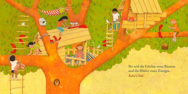 Druck auf Leinwand, illustriertes Gebet „Das Baumhaus“ von Constanze von Kitzing, Format: 30x60cm.